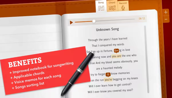 Song Writer is a simple utility where you can keep all your song lyrics along with chords and voice memos. This app is specially designed for those who get a lot of fresh ideas spontaneously and need them to be properly sorted out!