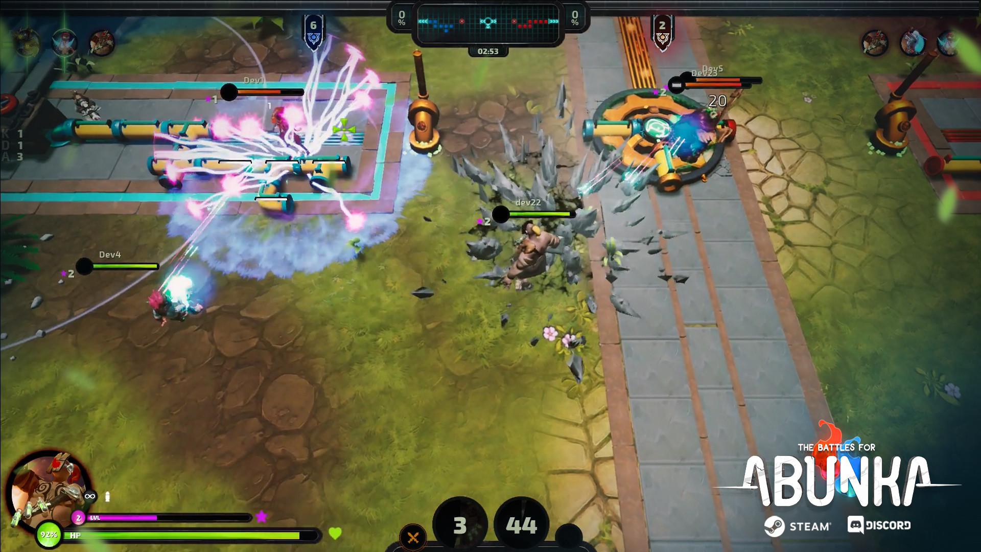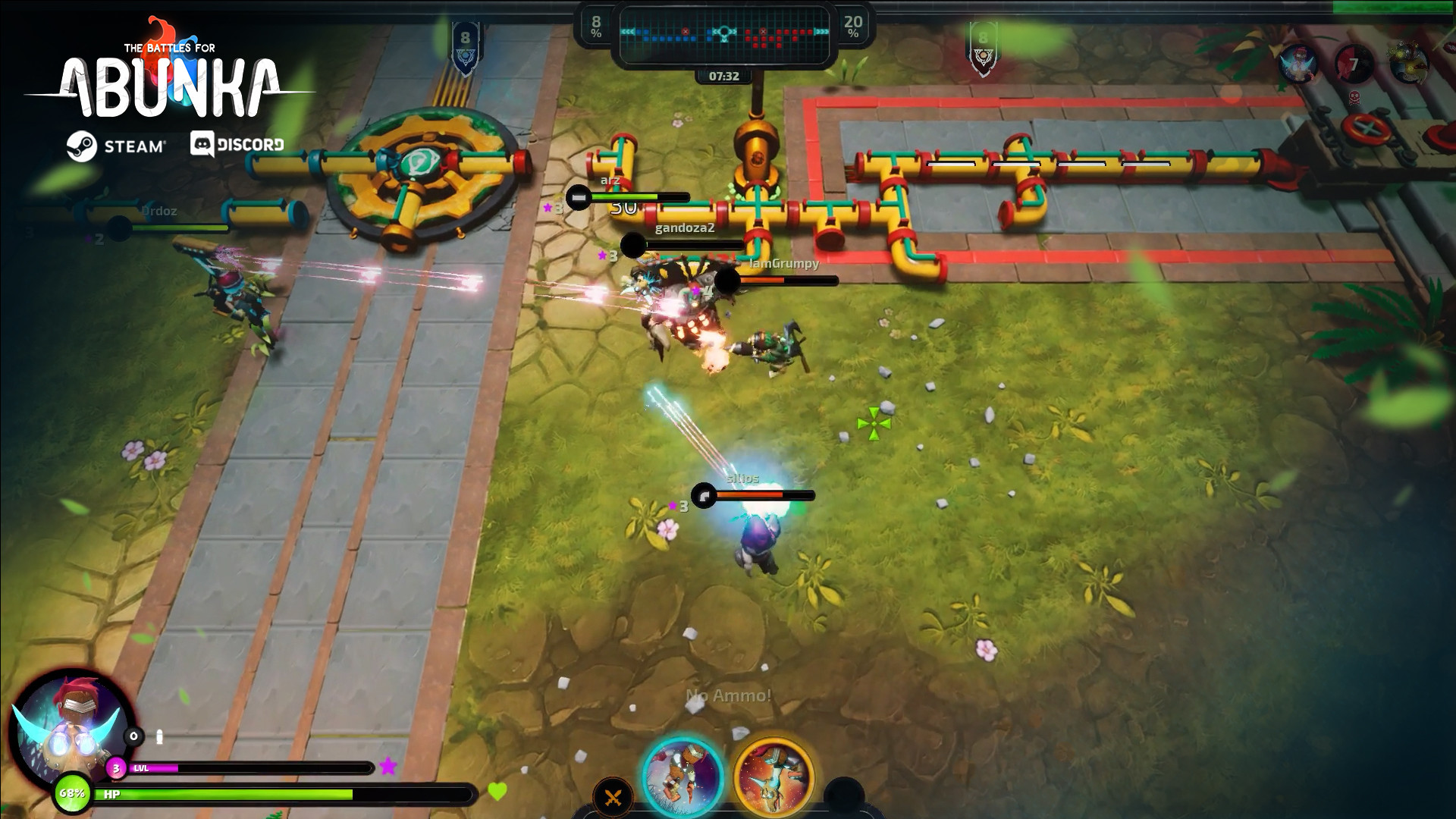 Abunka is a strategic PVP arena brawler. Experience the unique combination of a top-down shooter meeting a fast-paced RTS pipe building game and take part in a highly competitive, adrenaline fueled 3V3 battles.