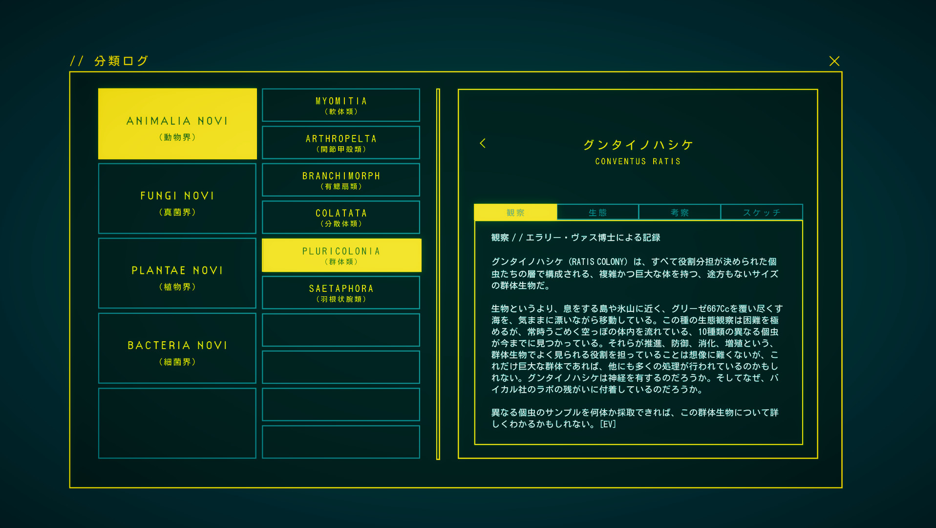 生命体のサンプル採取、ルート設定、周辺環境のスキャン…