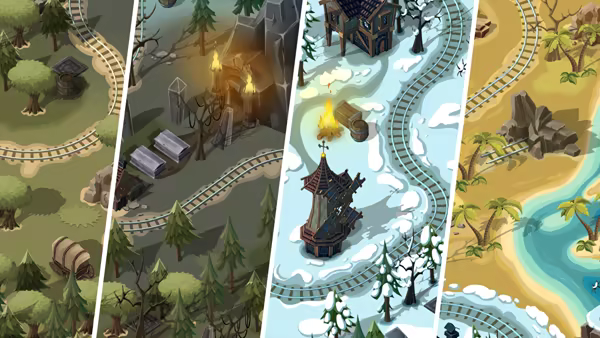 Your goal is to help Thomas reach his destination safely while retaining as many train cars full of gold as possible. To do this, you will need to buy new trains, build defense towers, and utilize the train's superpowers. You will have limited resources and time. Apply strategic thinking, and help Thomas get home!