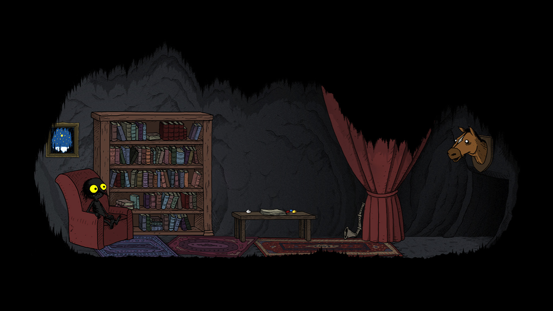 • Slow exploration of a vast, hand-drawn cave.
