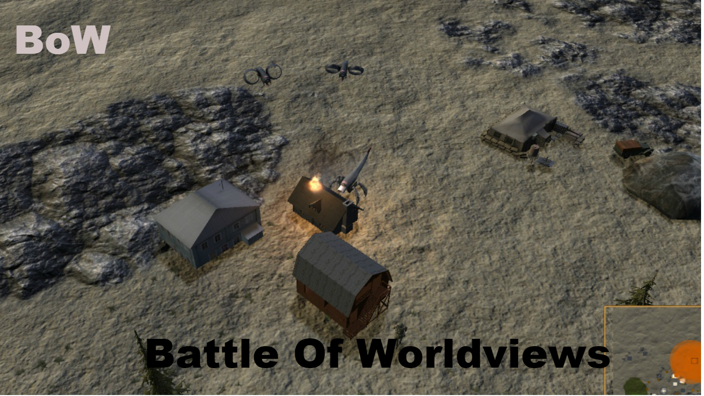 Battle Of Worldviews - "real time strategy" in which you have to fight with friends or AI, while watching the resources, weather conditions and their development. Constantly explore and discover improvements for your units, actively extract missing resources, suddenly attack other players at night and victory will always be yours.