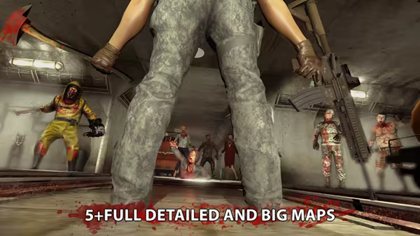 • The war against zombies happens at 5+ unlockable environments encompassing Urban City, Subway, Military Base, Space Station, Sci-Fi Laboratory and etc