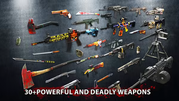 • Equip yourself with a vast 30+ splendid high-poly realistic and powerful weapons including melee weapons, hand guns, assault rifles, shotguns, light machine guns and grenades