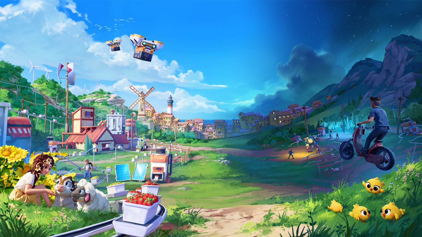 • 🌱 Farming & Ranching – Grow over 100 variations of crops, raise and breed bondable animals, and build eco-farms that manage themselves seamlessly, without micromanagement.