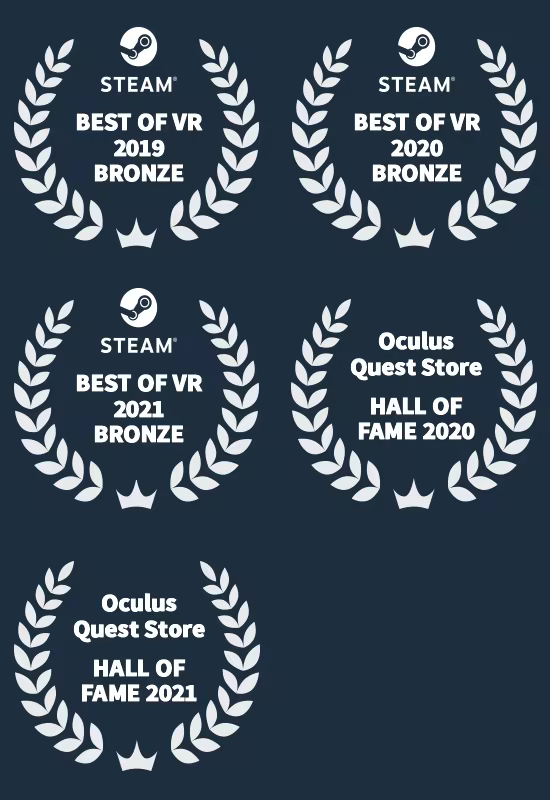 • Sharpen your blade and abilities after every fight and take on thrilling battles along your journey. Battle with a generous variety of melee weapons available to help you achieve your virtual reality sword art action: one and two-handed swords, katanas, axes, maces, boomerangs, shields, etc.