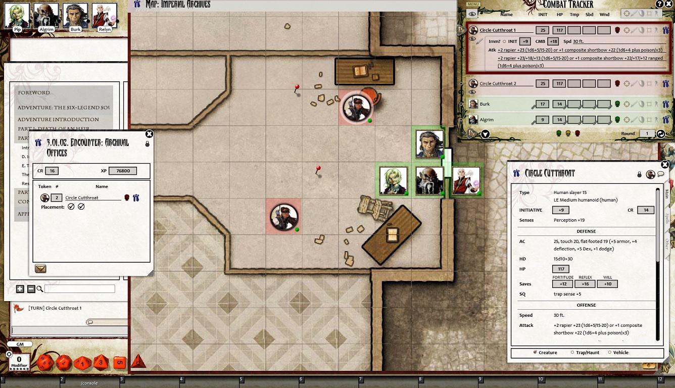 • Tokens for each encounter are all pre-placed in starting locations on the map. You can edit these on the fly.