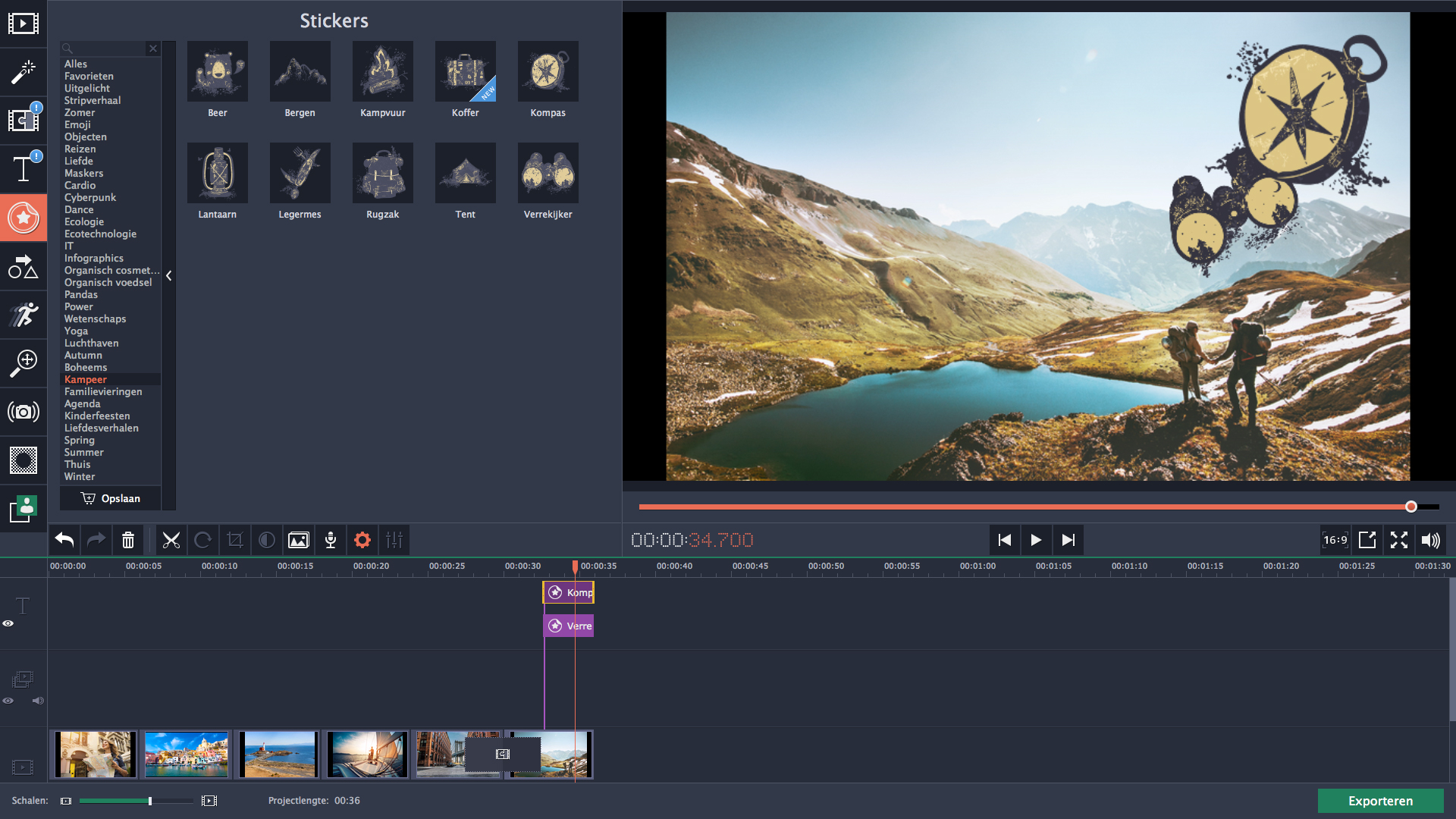 Laat de herinneringen aan je laatste vakantie weer opleven met behulp van thematische stickers, titels, overgangen en muziek.