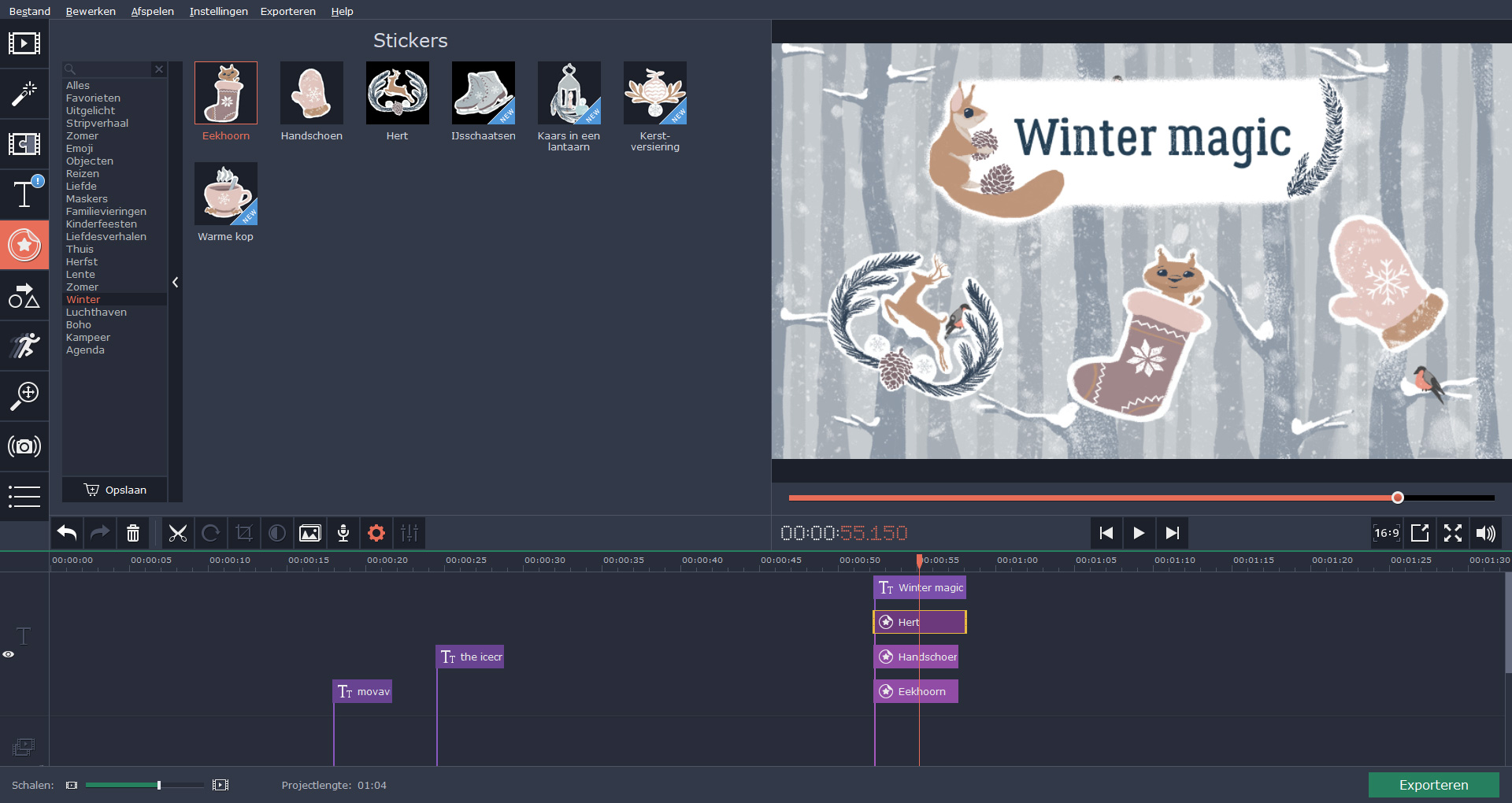 Hete zomerdagen en koude winternachten, regenachtige herfstavonden en de eerste bloemen van de lente... Creëer perfecte seizoensdecoraties met behulp van titels, stickers en achtergronden. Voeg wat sfeervolle muziek toe en klaar is Kees.