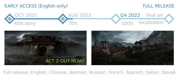 The full version will contain 1 more act to complete the story, more character and location variety, as well as more ambient sound effects. We also expect the full version to be much better balanced and so even more immersive.”