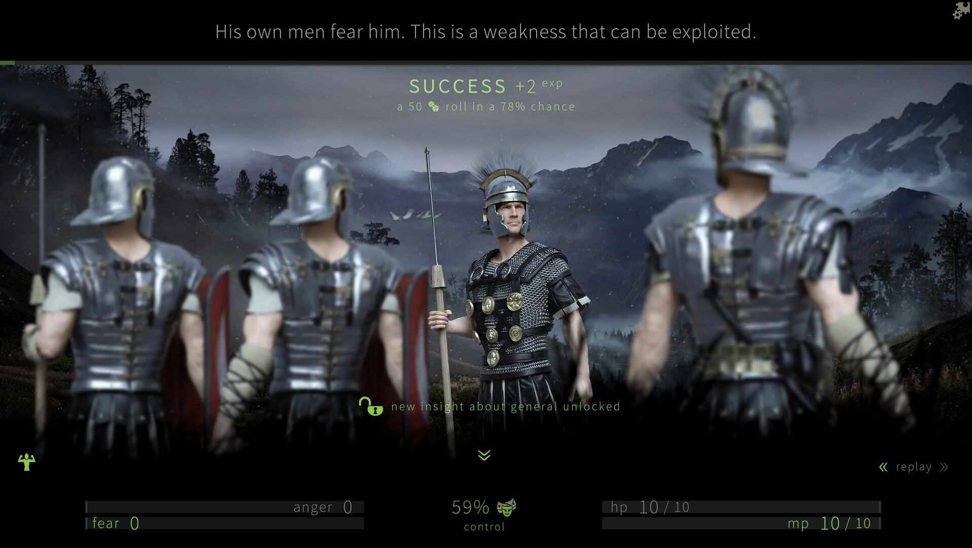 A text-based RPG full of choice and action. Fight for survival in the midst of the Roman invasion of ancient Caledonia. Strategize one dice roll at a time as emotions affect your performance. Use willpower to outsmart opponents, gain allies, wage war, or strive for peace. How will your story end?