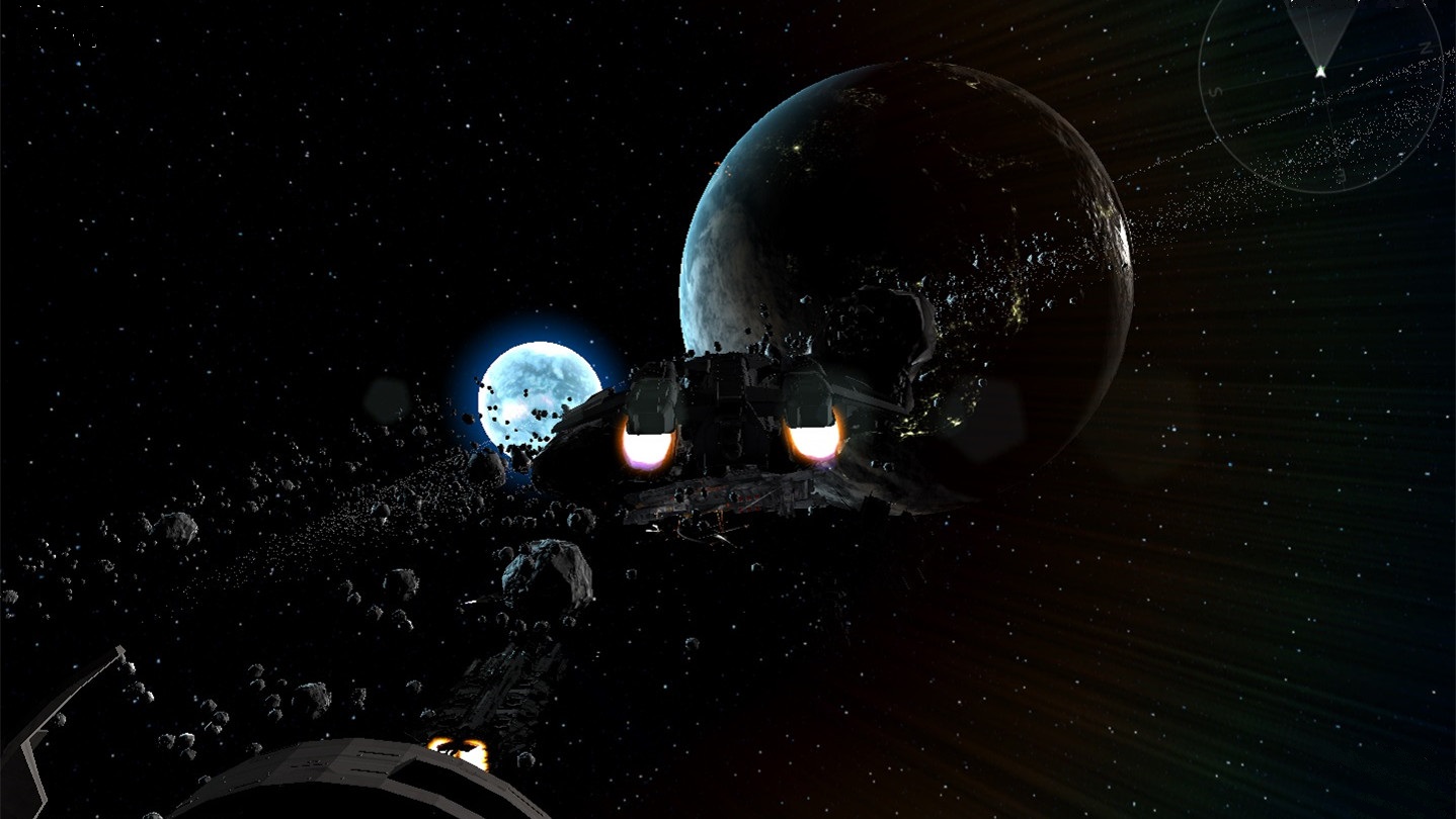 This is an independent development of casual games, is the experience of virtual reality space shooting game. The player flying in the universe and sitting in the cockpit and observing the magnificent cosmic scenes outside the fighter by the VR, through the meteorite zones, the jumping doors, the debris of the spacecraft and other scenes, chasing and shooting with the enemy fighters in space with their teammates and attacking the enemy's spaceship. Follow up plans also develop planetary exploration, Galaxy roaming, and spaceship wars. Control the direction of the fighter through the mouse in the game,' W' key to speed forward, 'S' key to slow down, 'A' key to the left roll, 'D' key roll to the right, 'ESC' key suspension game, 'space' key resume game, the left mouse button shooting, the right mouse button to change the weapon.