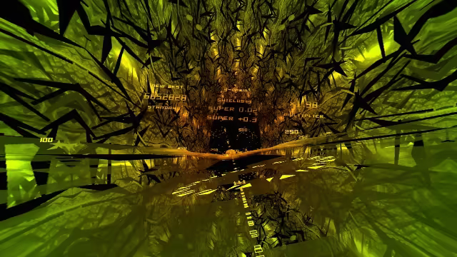 POLYBIUS is designed to bring you quickly to a euphoric flow state, and to keep you there the whole time you are playing. There are no bosses to spike your progress, and the game will never make you redo sections - progress made is progress kept, always, even if you lose a life. We want you to come out of every game of Polybius, whether or not you've beaten your highscore, smiling and happy because you've enjoyed the act of playing so much.