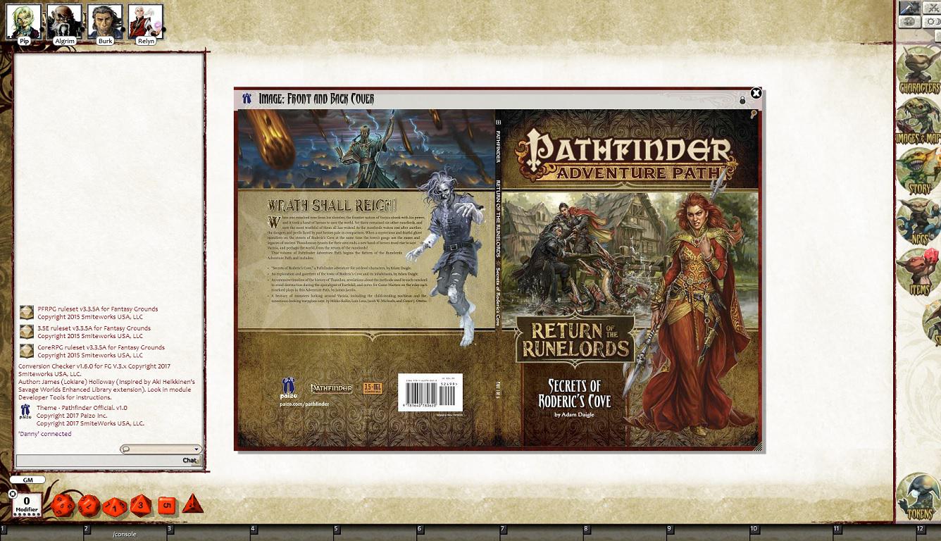 Requires: The free Fantasy Grounds virtual tabletop (VTT) software and the included Pathfinder ruleset.