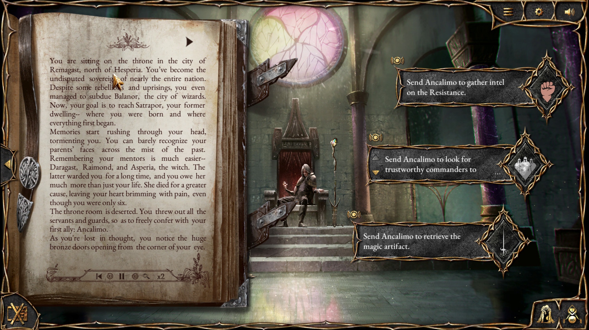 We've taken elements from game-books and visual novels to develop a videogame with an unprecedented format. TBS offers a fantasy story yet to be written, where the world changes and reacts to the player's actions. This will allow you to live up to 1700 stories and 40 different endings, your decisions will affect the way the tale unfolds. Every single development and subplot in the story is completely narrated and illustrated, even the smallest ones. In TBS, every choice is crucial.
