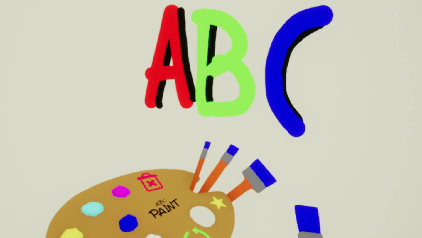 ABC Paint is a simple Multiplayer VR drawing experience that anyone can start using in seconds. Randomized funny heads for players. Draw on your friends' head or paint them a stick figure body. The non-violent nature and ease of use makes the game suitable for even the youngest of players as their first step into VR.