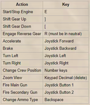 • Infantries can sit on your tank when you are not moving: they must press the "j" key while standing next to you.