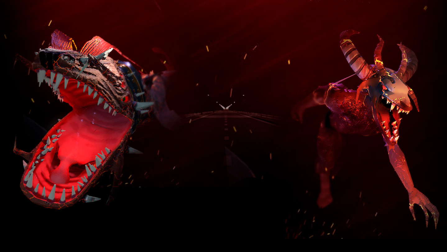 Various kinds of demonic creatures: running, jumping and breathing out the fire. Also cars, buses, helicopters and jets possessed by evil forces. The death with a scythe on a motorcycle. And a really huge and dangerous creature at the end.