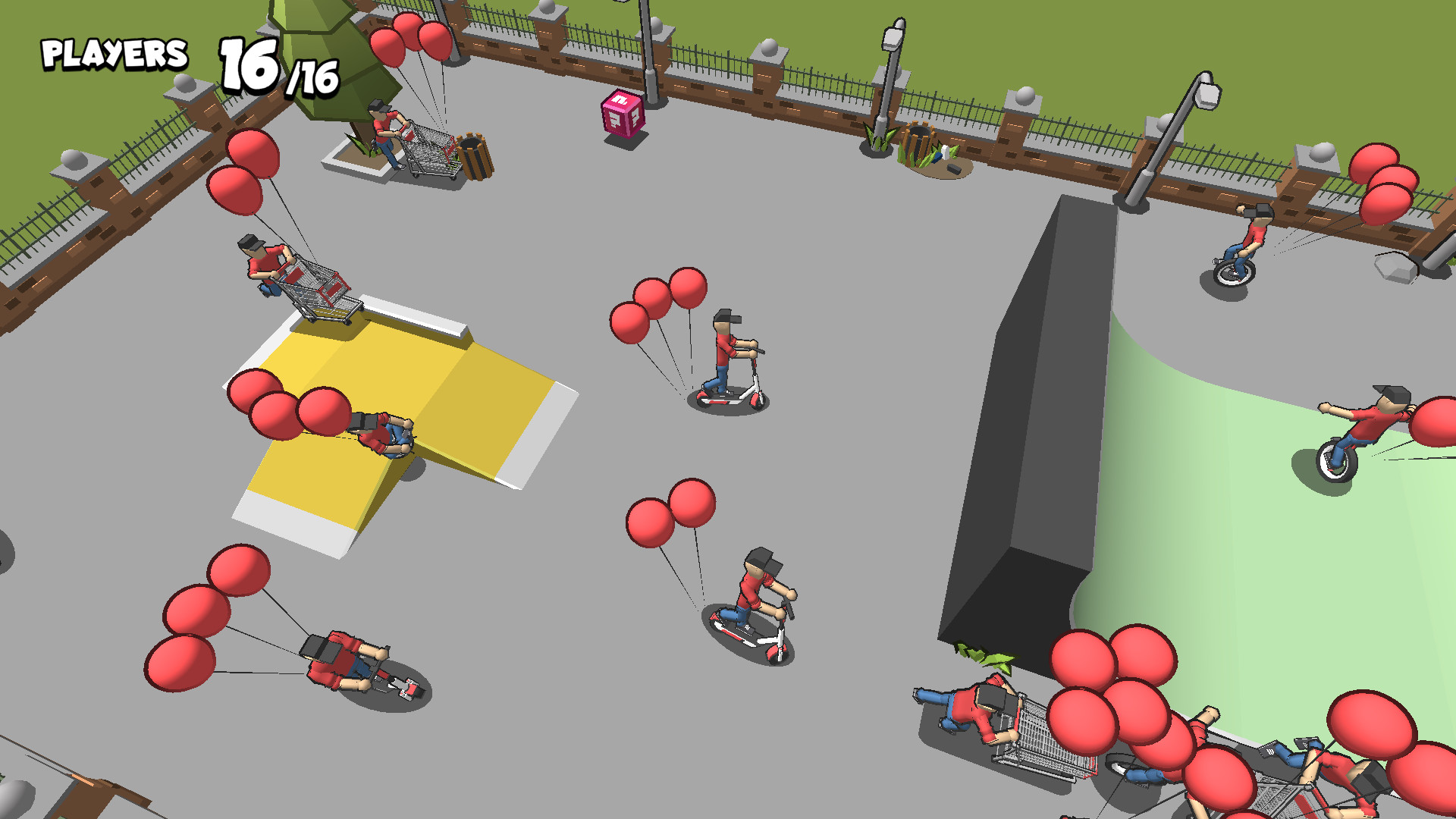 Classical party battle game featured by freaky vehicles. Collect power-ups and destroy as many balloons and players as possible before getting destroyed. Various game modes like Battle, Mega Ramp, Survival, Race, Avalanche, Crash, Hill Bomb and Free Roam. Can you defeat all opponents?