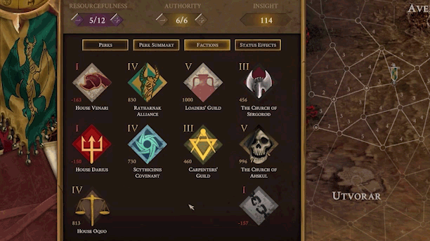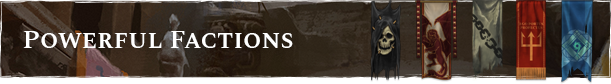 Ally yourself with mighty factions that shape the Riven Realms with their influence on commerce, brutal wars, and their constant intrigue. From prosperous Trading Houses to criminal syndicates and religious organizations, these groups offer powerful rewards and boons to those loyal to their cause. But take heed - befriending a faction will more than likely antagonize some of the others.