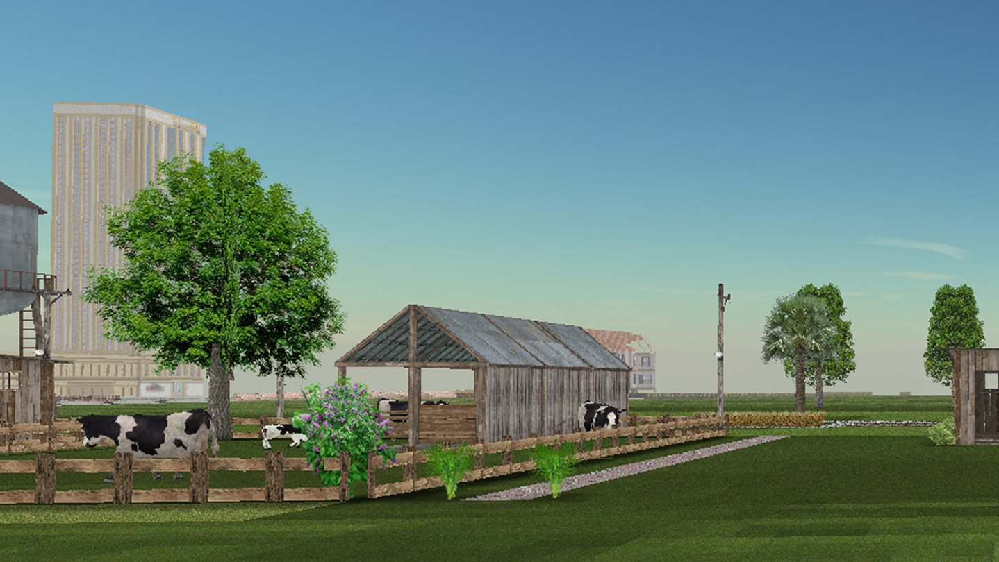 Use blocks and other building materials to build houses, farms or cities.