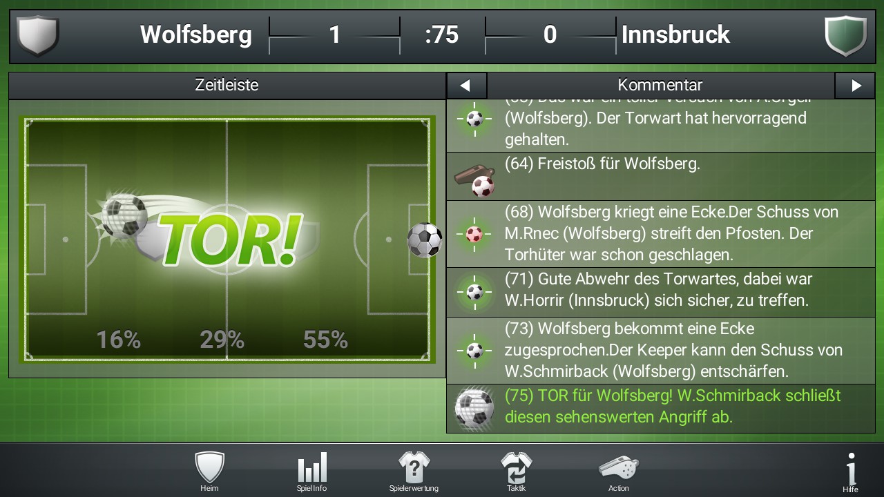• Ausführlicher Spielkommentar lässt dich verfolgen, was im Laufe des Spiels passiert.