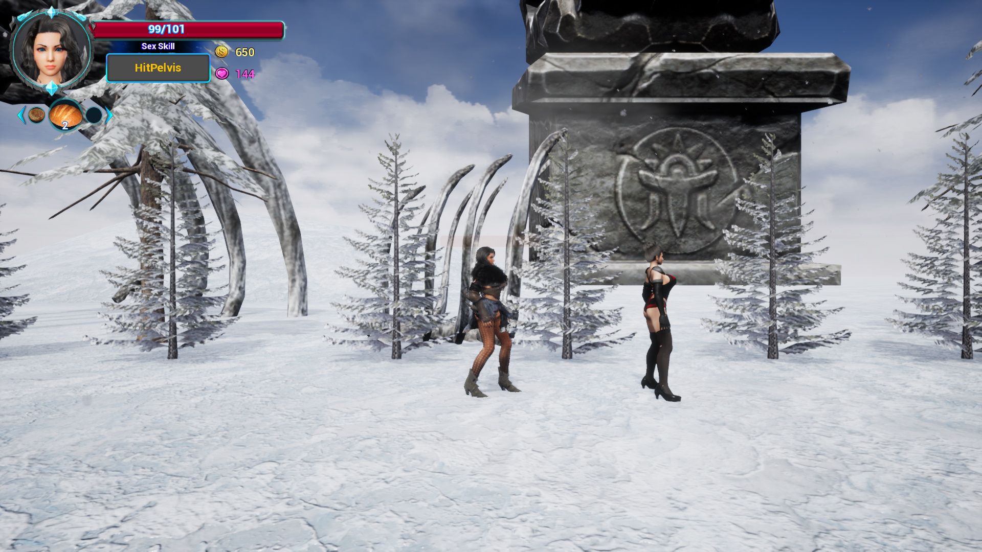 The game is a heroine's adventure in the snowfield. The enemies are also female characters, fighting with them and have sex with enemies.