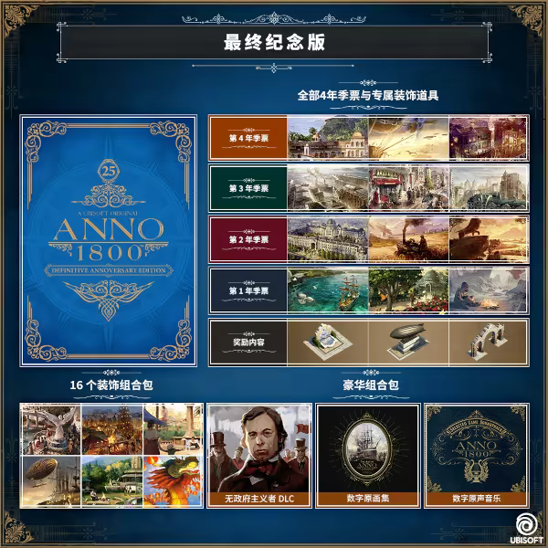 使用最终纪念版,解锁完整的《纪元 1800》游戏体验,该版本内含: