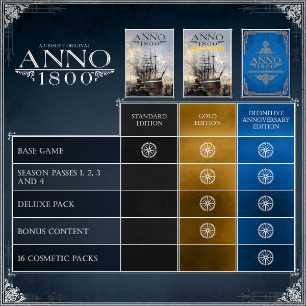 Unlock the entire Anno 1800 experience with the Definitive Annoversary Edition, which includes the following digital content: