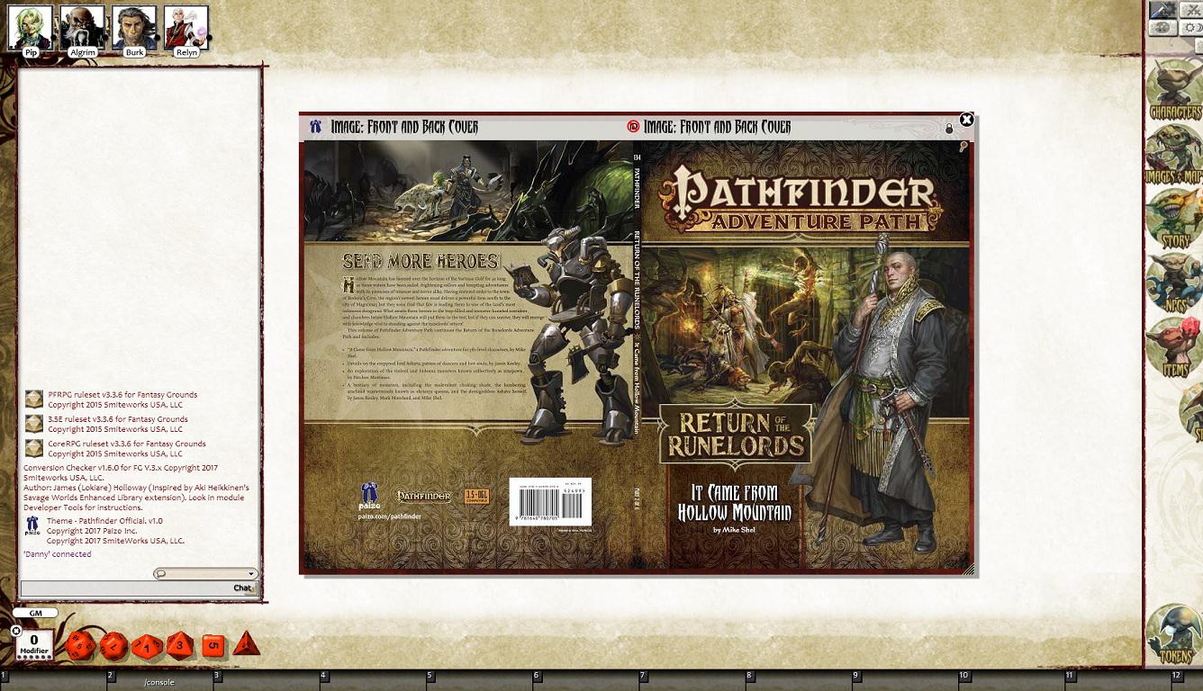 Requires: The free Fantasy Grounds virtual tabletop (VTT) software and the included Pathfinder RPG and D&D 3.5/ OGL ruleset.