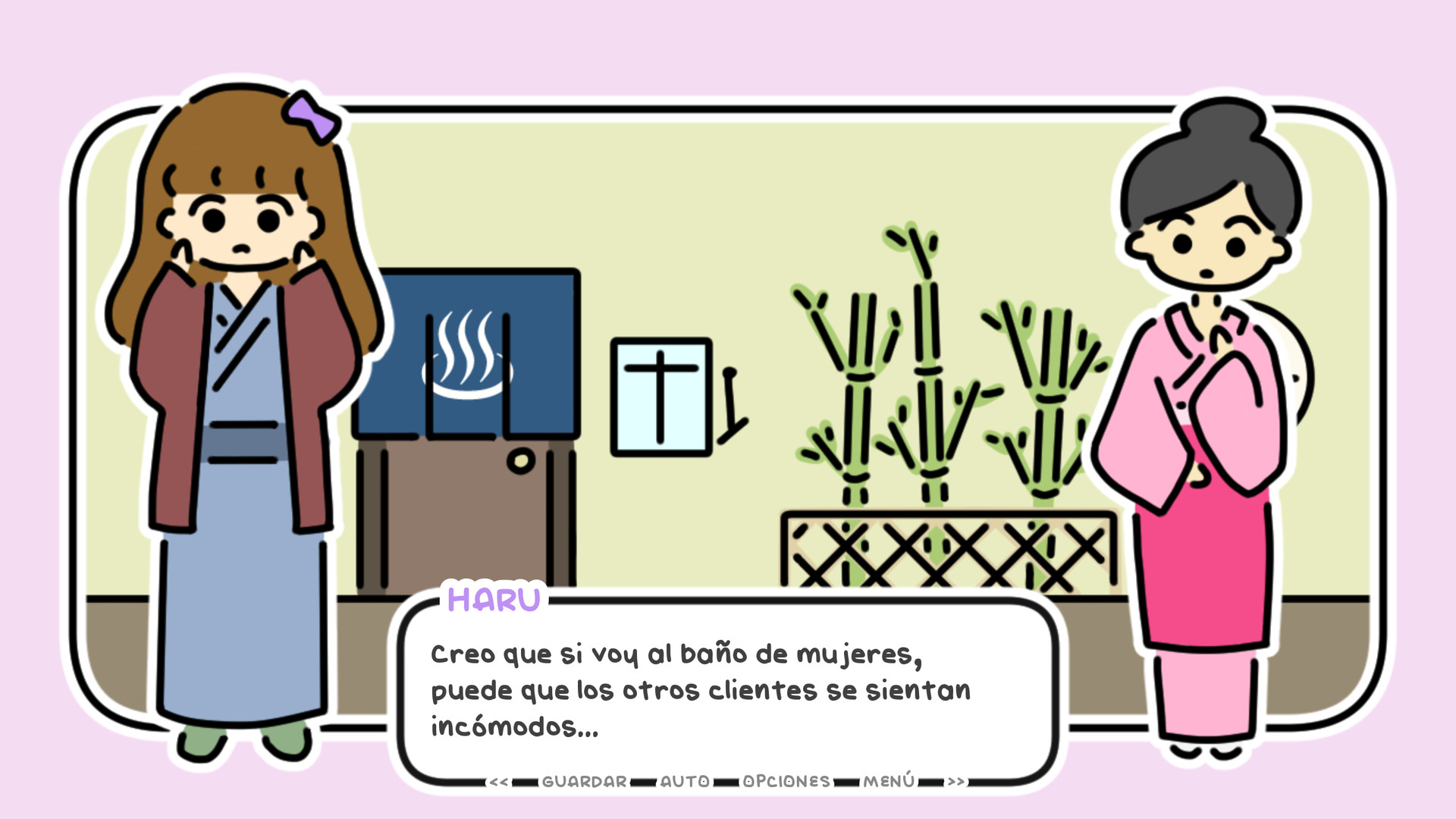 ONE NIGHT, HOT SPRINGS es una novela visual. Juega como Haru, una mujer transgénero, y únete a ella en las aguas termales de Japón.