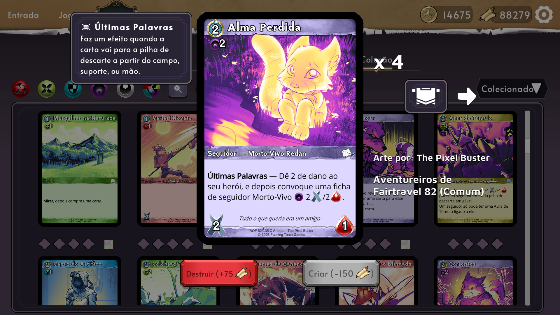 A cada turno você seleciona entre 5 novas cartas para adicionar ao seu baralho. Nunca se sabe o que vai aparecer!