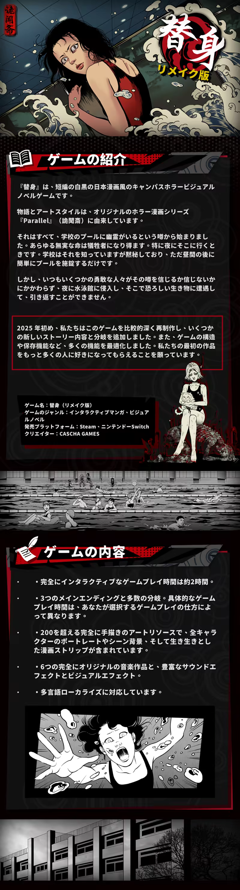奇妙なキャンパスの伝説、日本の伝統的な白黒コミックのホラーストーリーに連れて行ってください。 おなじみのシーンを目撃し、恐ろしい瞬間を熟考してください。