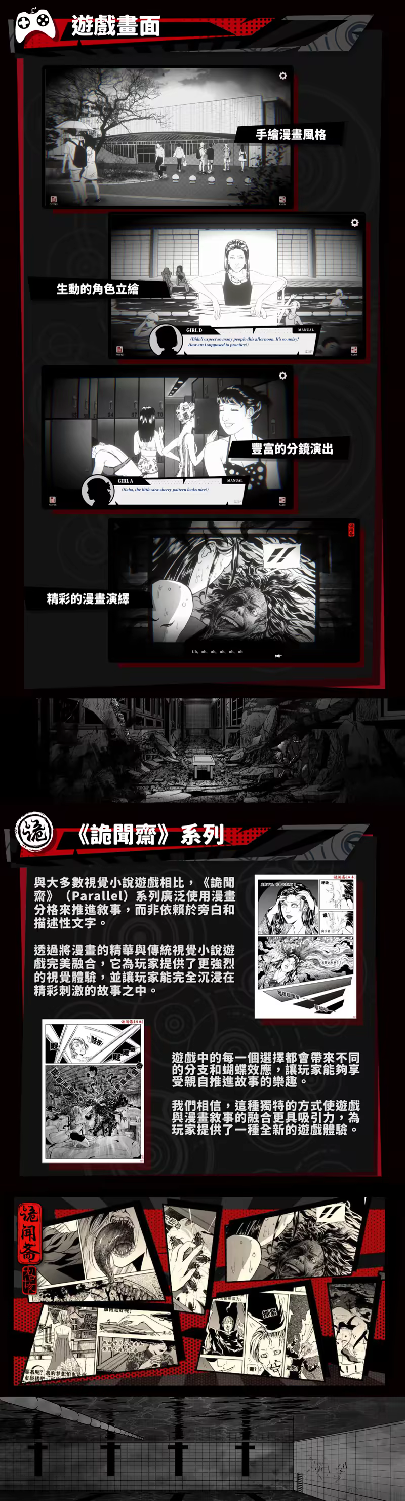 一段校園裡的離奇傳說,帶你進入傳統日式黑白漫畫的恐怖故事中。共同見證那些熟悉的場景和細思極恐的瞬間。