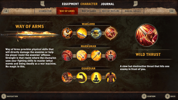 Customize your warrior by choosing from among three different Ways of Power - Arms, Gods, Nature - each one with three different professions to choose from. Players can meet twelve different NPCs that could join them during the quest, depending on the alignment of the character.