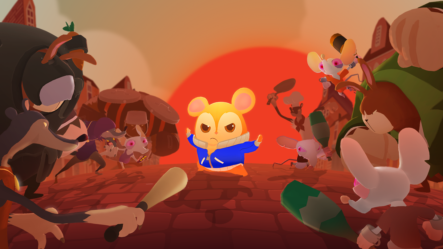 The once peaceful town of Hamsterdam is in danger! The vile chinchilla Marlo and his Vermin Gang are wreaking havoc and terrorizing the town. Enter our hamster hero, Pimm, who must harness his mightiest martial arts powers and kick tail through district after district, on a heart-pounding journey to take down the Vermin Gang, save his grandpa, and restore peace to Hamsterdam.