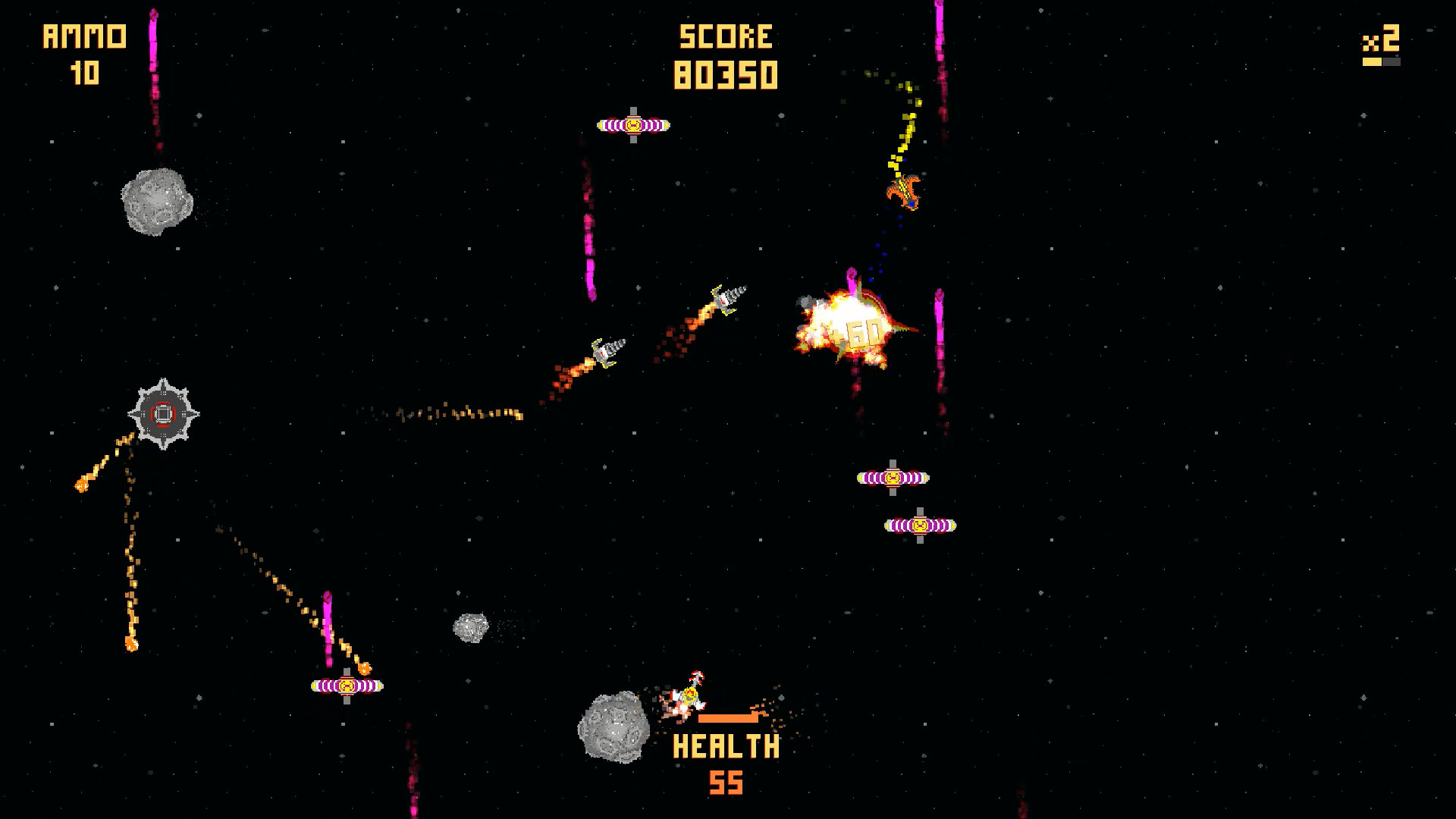 Inspired by classic arcade shooters, Space Mayhem is a fast-paced score chaser with a retro style. Collect powerups, manage your ammo, obtain massive score multipliers, and blast your way through infinite, chaotic waves of enemies!