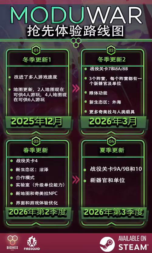 “我们将根据玩家的反馈,添加更多精彩内容,包括新增单位、完整的剧情战役模式、更多独特的 NPC 生物以及全新的游戏模式。”
