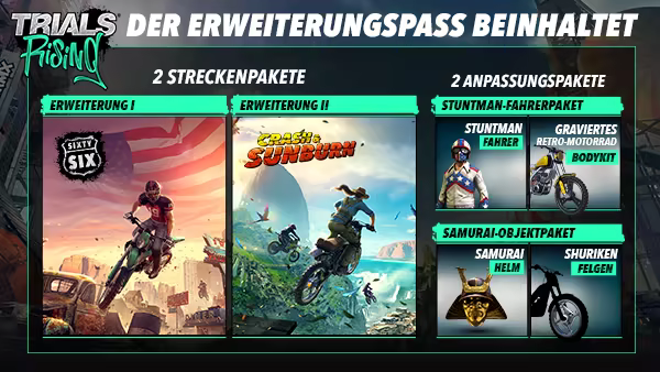 Dieses Produkt benötigt zum Spielen die Steam-Version des Basisspiels Trials® Rising.
