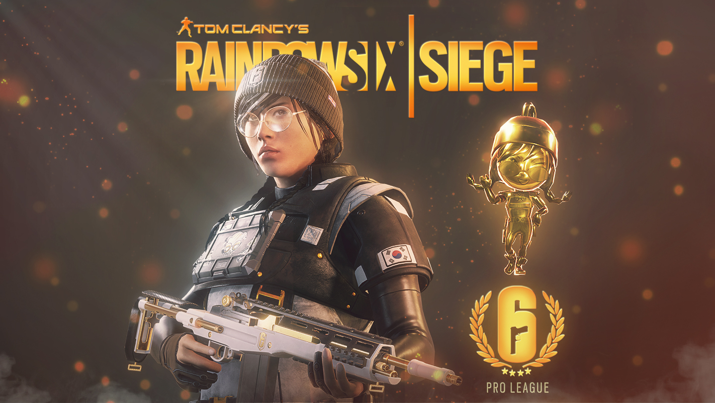 Celebrate the Rainbow Six Siege Pro League with Dokkaebi's Gold Chibi charm, Starlight uniform, Electron headgear and Gamma-Ray weapon skin for the Mk 14 EBR.