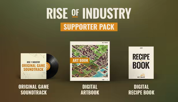 The Supporter Pack includes; all twenty-one original music tracks (plus one exclusive track that didn't make it into the game) and the full digital art book from the development of Rise of Industry.
