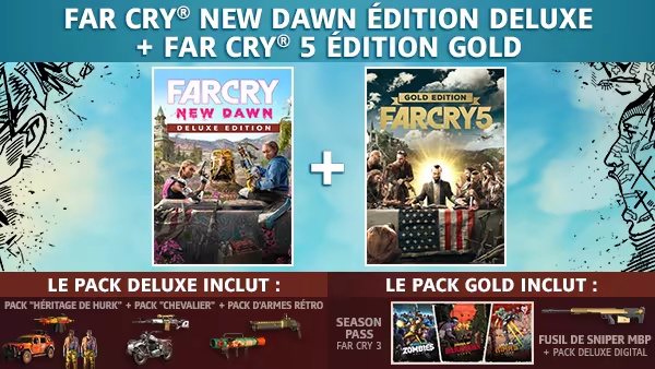 À vous de défendre Hope County grâce à ce pack regroupant Far Cry® 5 et Far Cry® New Dawn édition Deluxe !