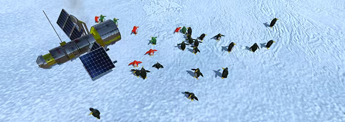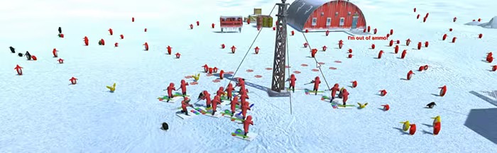 A real-time strategy (RTS) game which comes from our love of 50s Sci-fi films. Set in Antarctica you control a team of top scientists researching penguins. Disaster strikes when a satellite carrying an unknown space virus crashes near a penguin colony.
