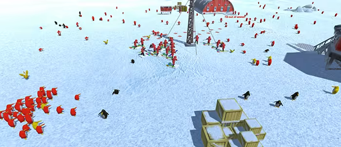 A real-time strategy (RTS) game which comes from our love of 50s Sci-fi films. Set in Antarctica you control a team of top scientists researching penguins. Disaster strikes when a satellite carrying an unknown space virus crashes near a penguin colony.