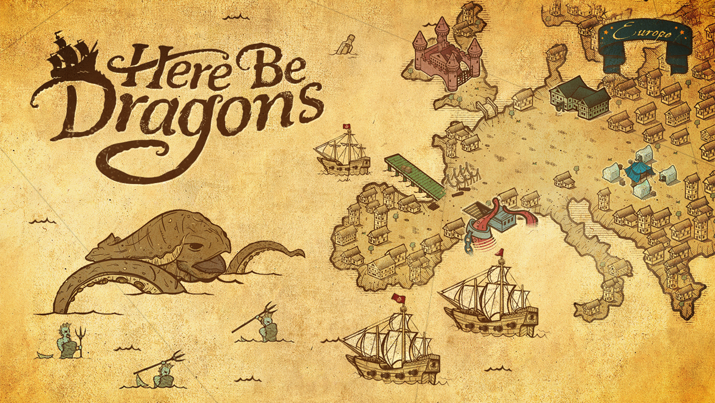 Here Be Dragons is a satirical turn-based strategy game featuring unique "living map" graphics, where you lead a group of crazed captains and eradicate legendary monsters in order to allow Christopher Columbus the discovery of the New World.