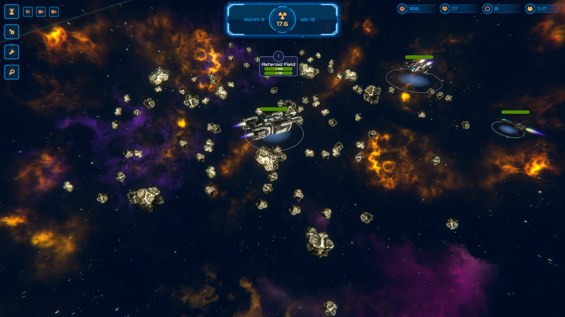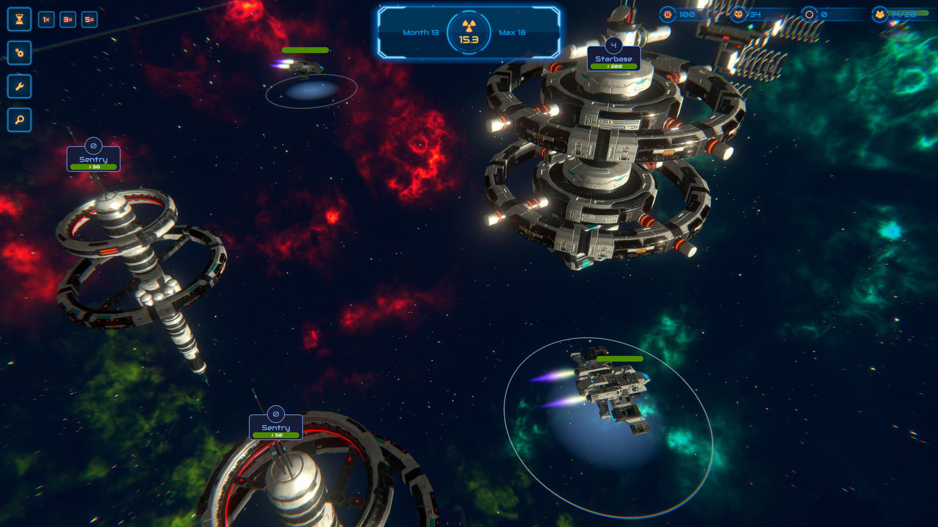Build space stations to expand your fleet among orbiting planets. Hire autonomous spaceships to do your bidding. While performing assigned jobs, they will periodically upgrade and repair equipment with the money they earn from you. Don't run out of space credits to pay their contracts or they might quit!