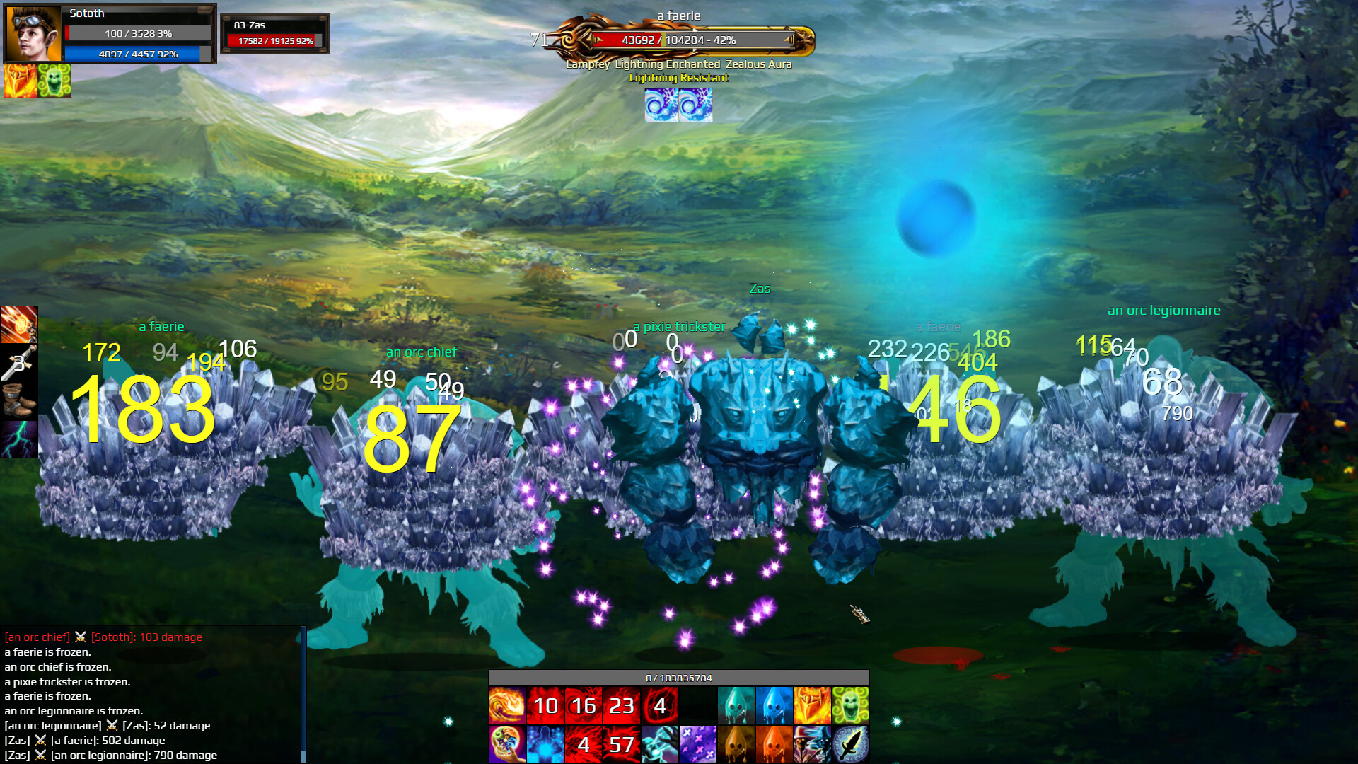 The combat system also rewards competence! The chain combo system is a core game mechanic which boosts your hero's rewards! Completing chain combos is a great way to increase experience gained, gold find, and magic find! A chain combo is achieved by killing consecutive monsters without leaving combat. Racking up a huge chain combo requires smart equipment decisions, understanding of the item properties, and a masterful understanding of your hero's strengths and weaknesses! You can even boost your rewards by fighting multiple enemies at once! Taking on big risks leads to big rewards!