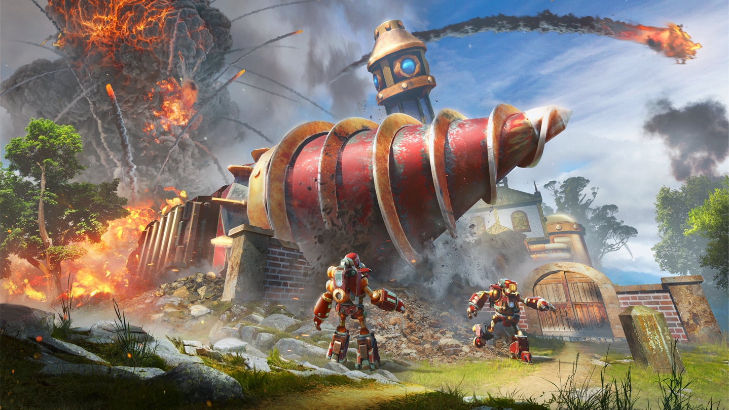 Volcanoids is a base-building open-world survival shooter that replaces the boring old base with a steampunk drill. Alone or with up to 3 other crewmates, explore an ever-changing volcanic island, build out your drill, and fight hostile machines to reveal what's been hiding in the depths of the underground.