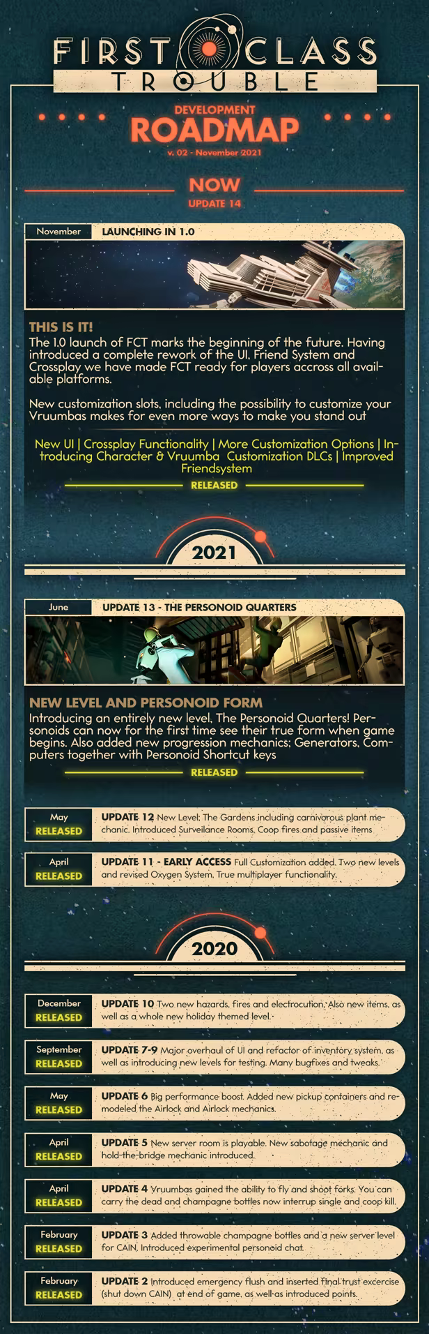 First Class Trouble está em acesso antecipado e nós estamos trabalhando ativamente na localização dele. As vezes quando nós atualizarmos o jogo nossas localizações demoram um pouco mais e os nomes das novas áreas irão aparecer em Inglês. Se houverem áreas em que seu idioma não estiver aparecendo, por favor reportem-nas e nós iremos atualizá-las o quanto antes possível.