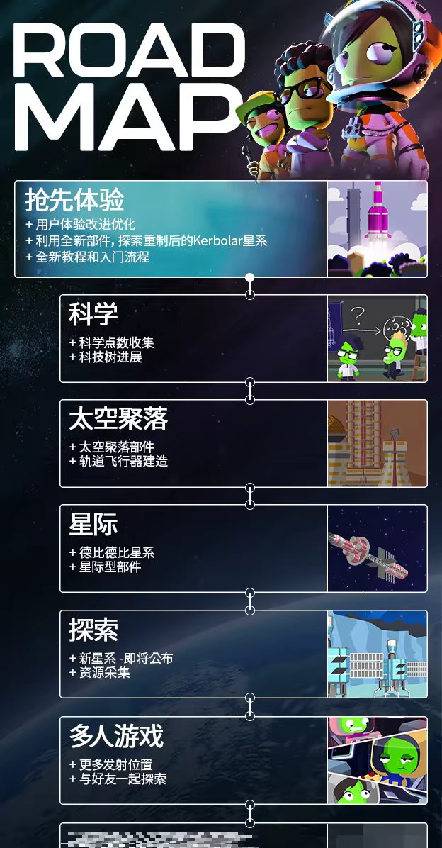 “在我们认为游戏及其全部功能集均达到我们所需的质量水准之前,KSP 2将一直处于抢先体验阶段。请查看上方的路线图,了解我们的功能发布规划,同时务必关注我们的社交渠道,获取更新时间方面的更多信息。”